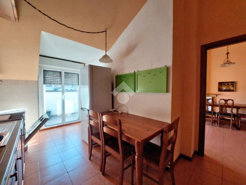 Accogliente soggiorno con acceso al balcone, funzionale cucina abitabile con dispensa, anch'essa con accesso al balcone.