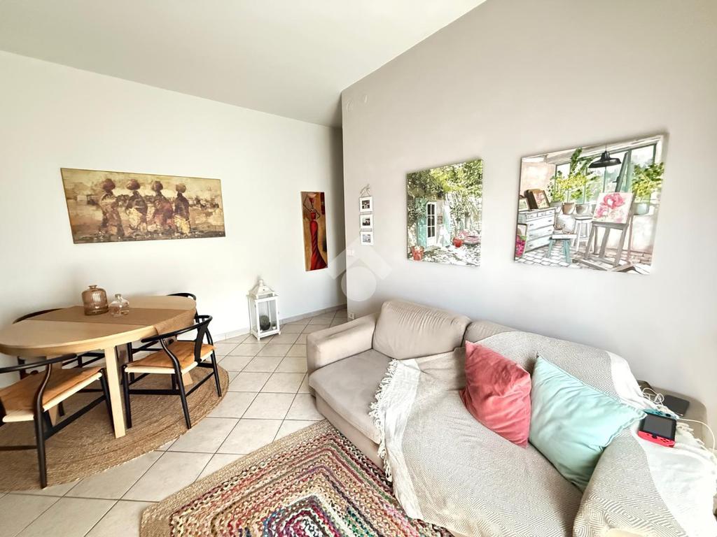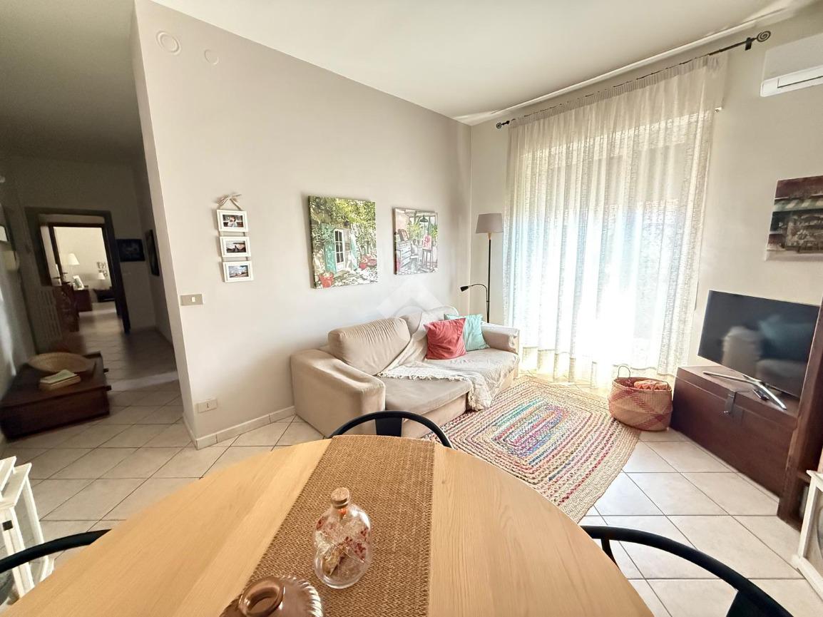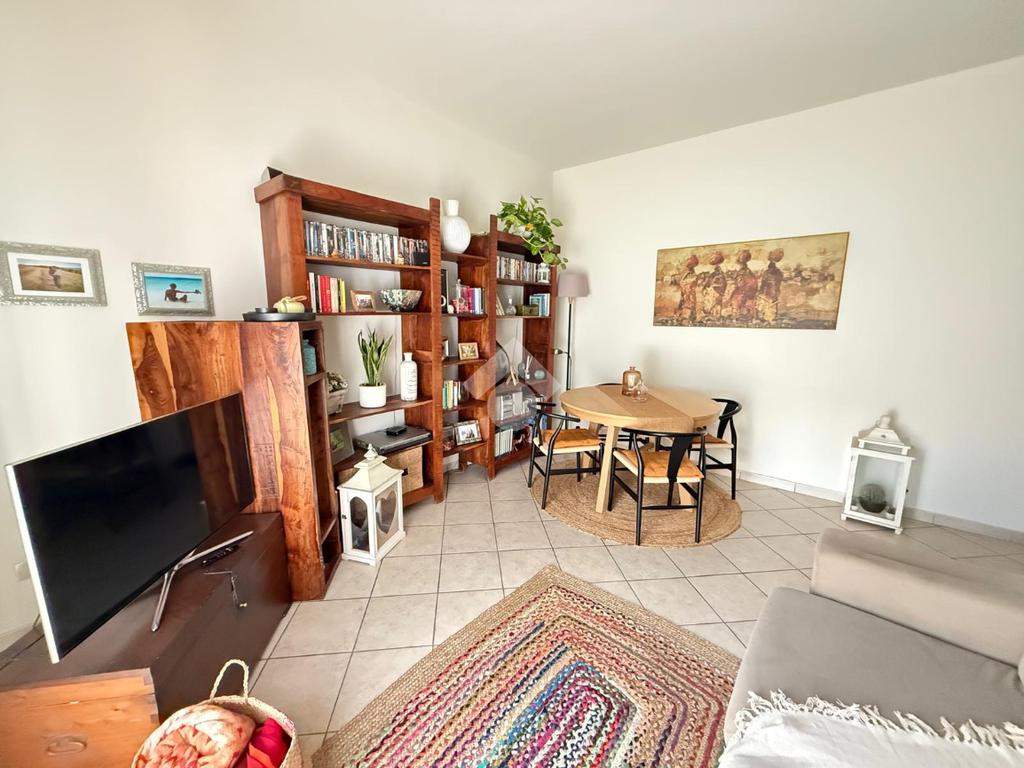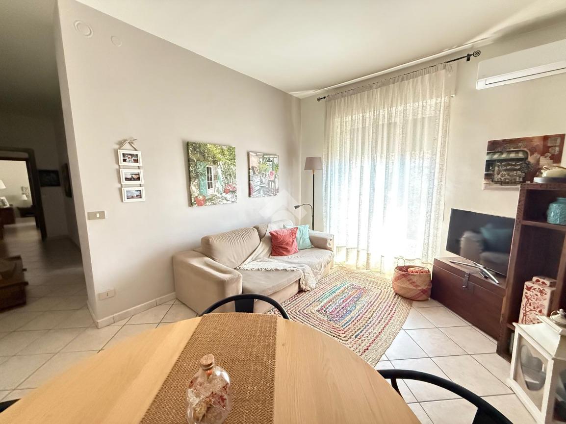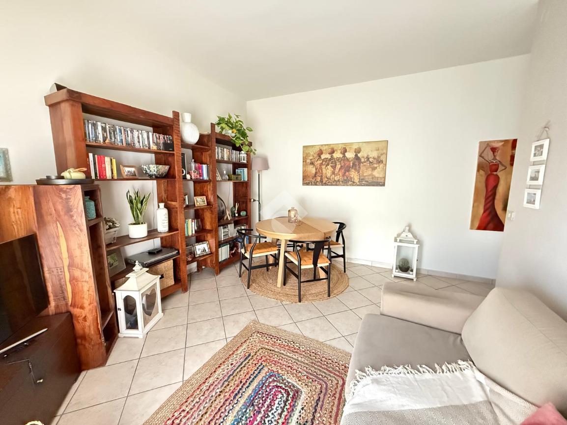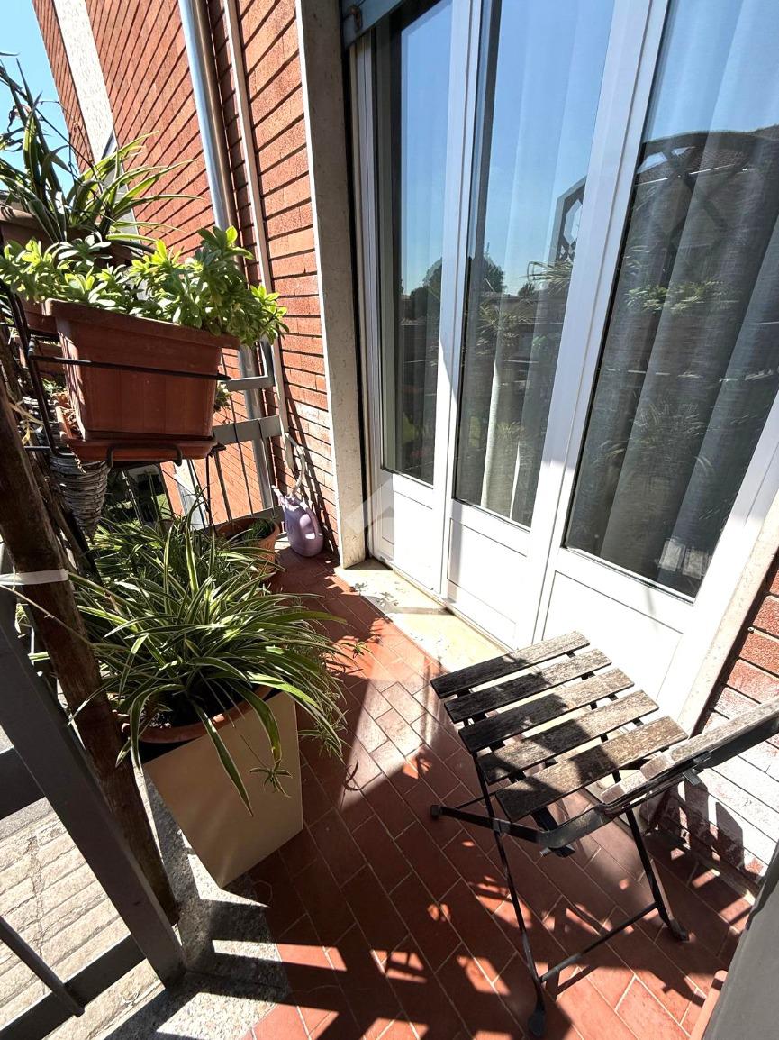 Il luminoso soggiorno, dotato di un balcone che si affaccia sulla zona giorno, offre uno spazio perfetto per momenti di relax o intrattenimento.