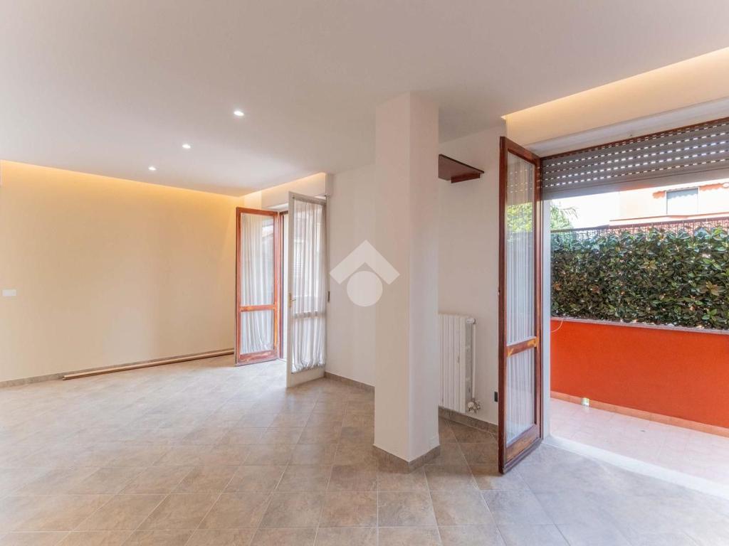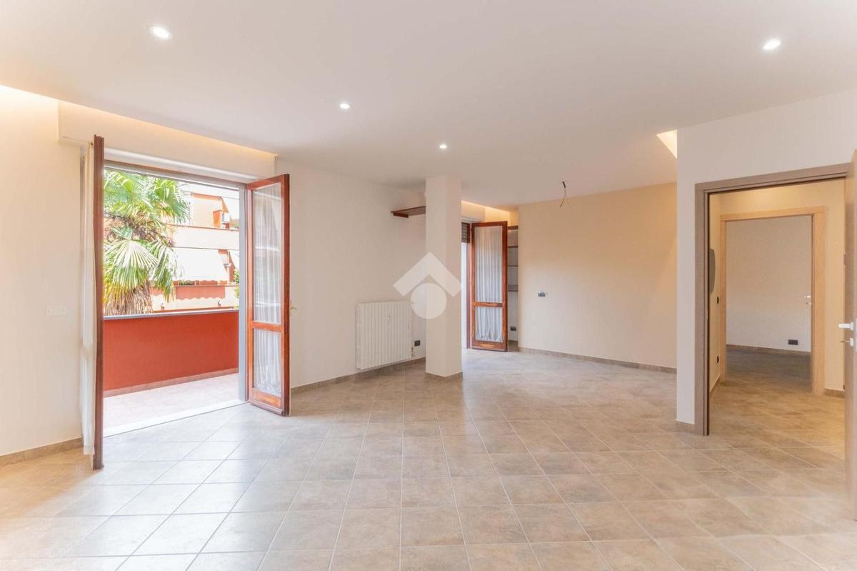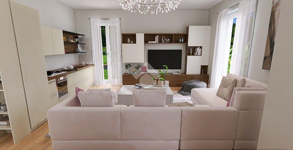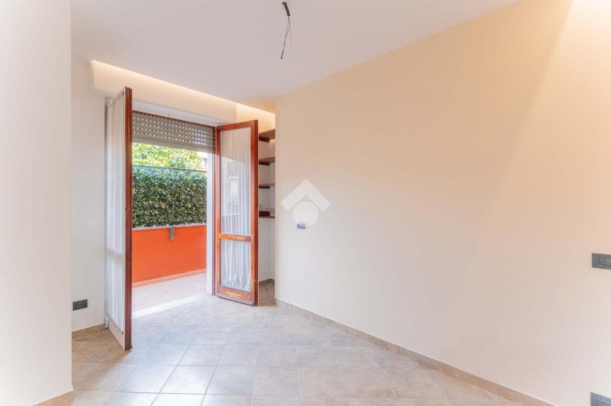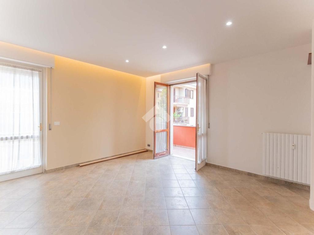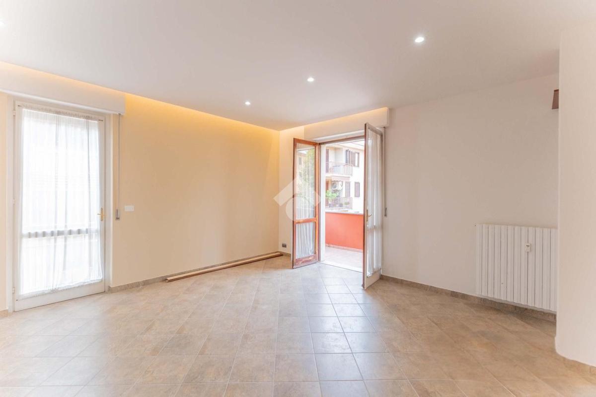 L'immobile è composto da un luminoso soggiorno con cucina a vista con due porte finestre che conducono al balcone che affaccia sull'interno della corte.