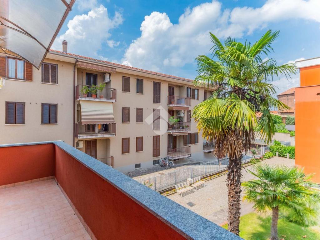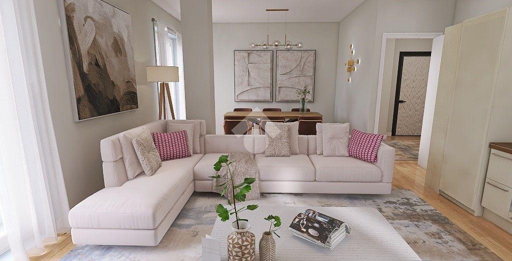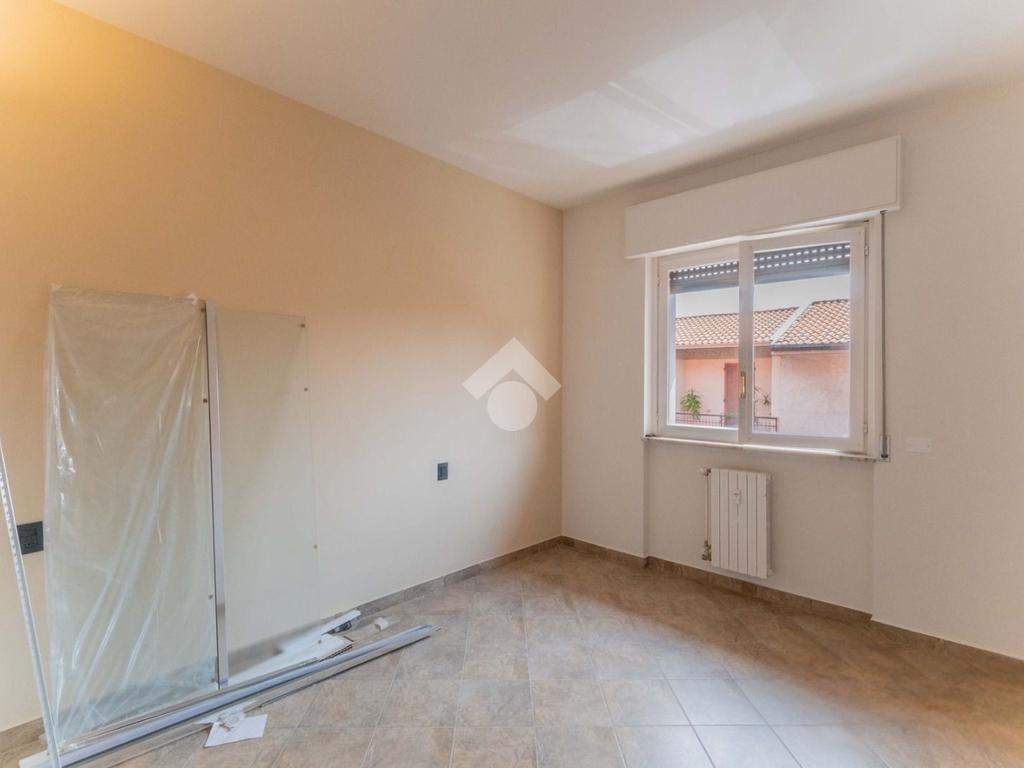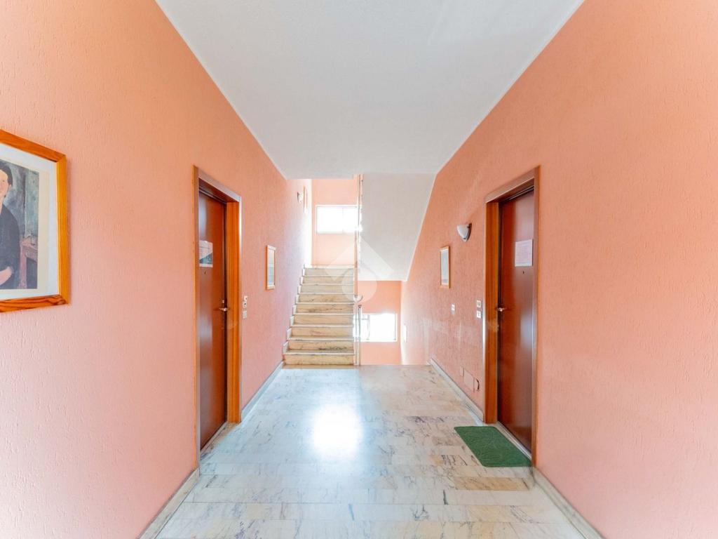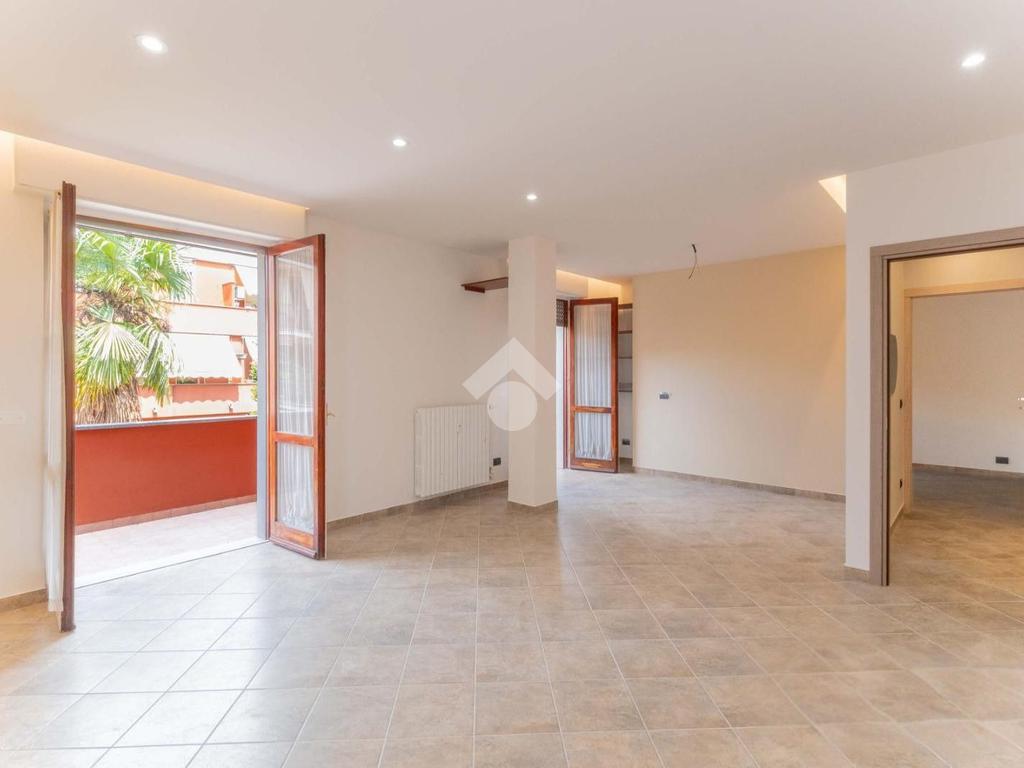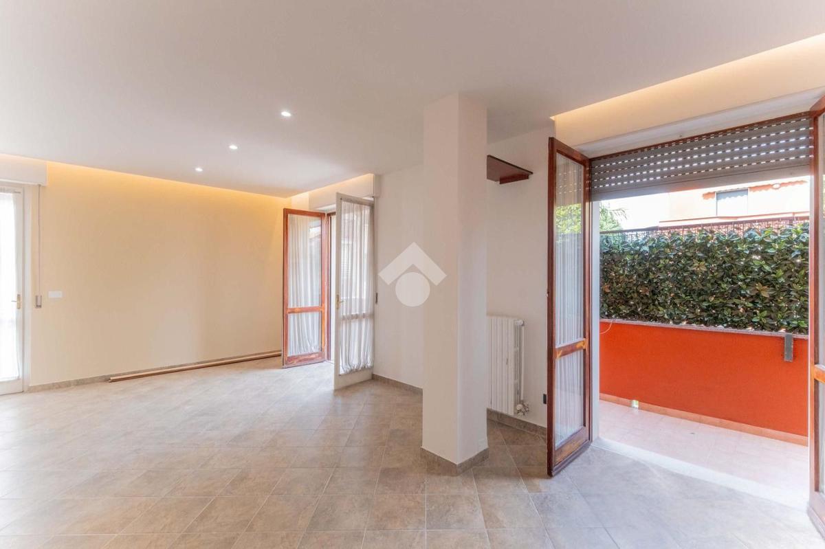 L'immobile è composto da un luminoso soggiorno con cucina a vista con due porte finestre che conducono al balcone che affaccia sull'interno della corte.