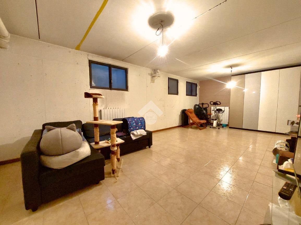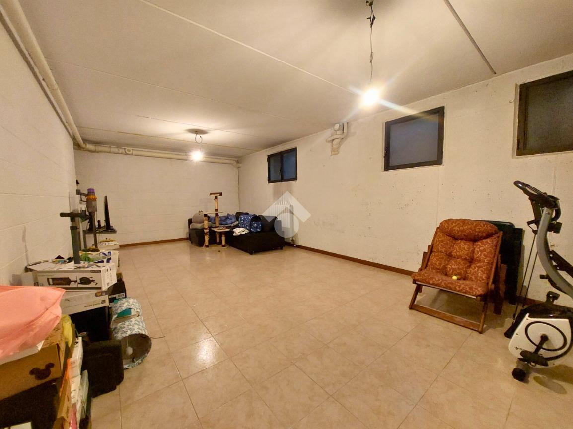 Una scala interna ci accompagna al piano semi-interrato composto da un ampio locale cantinato completamente rifinito, utilizzabile come locale hobby o studio.