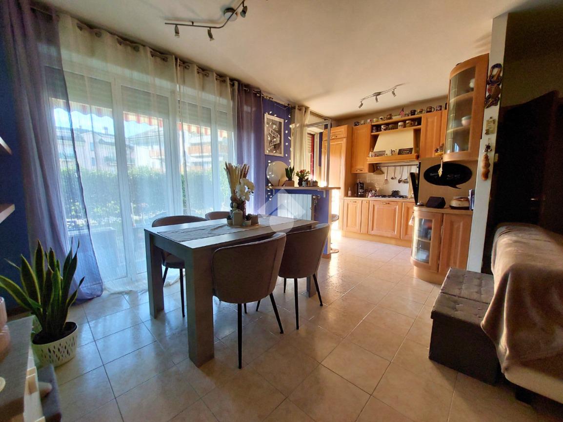 L'ingresso dell'appartamento è direttamente nell'accogliente e luminoso soggiorno con cucina a vista con accesso diretto al giardino privato , ideale per passare momenti di relax con amici o parenti.